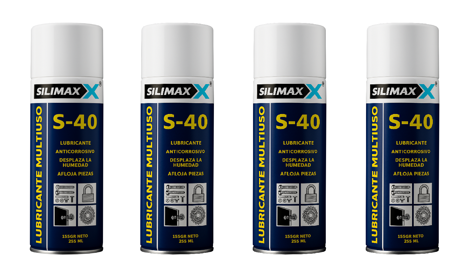 El lubricante multiuso SilimaxX S-40 Lubricante, anticorrosivo, desplaza humedad, afloja piezas, puede usarse para el trabajo, el hogar, el automóvil, la industria, actividades recreativas y mucho más.