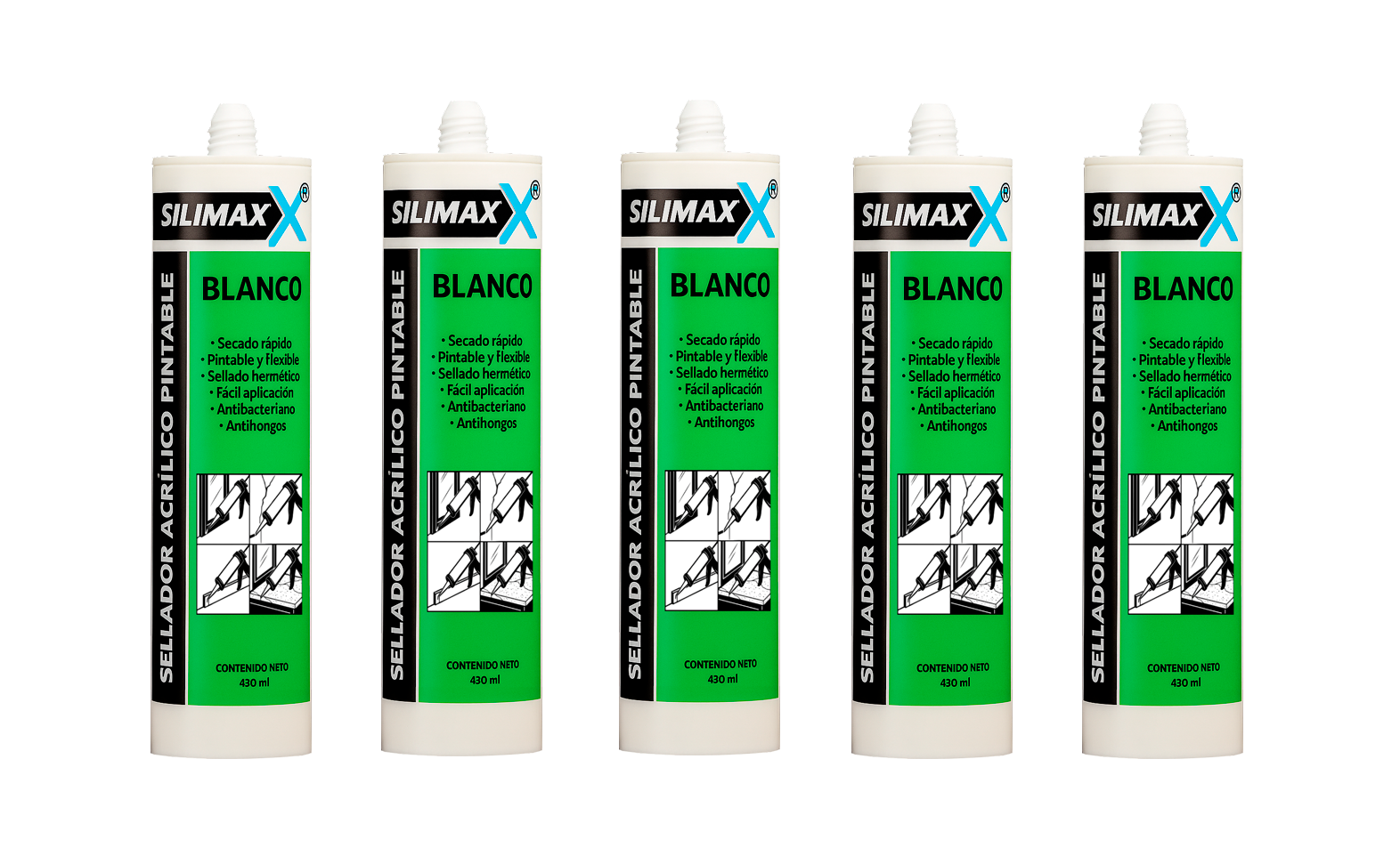 Sellador acrílico mono componente, para uso en interiores o exteriores, pintable y flexible; anti hongo formulado para el sellado de huecos y juntas en las que un ligero movimiento o vibración hace que las masillas convencionales no elásticas se agrieten y caigan.